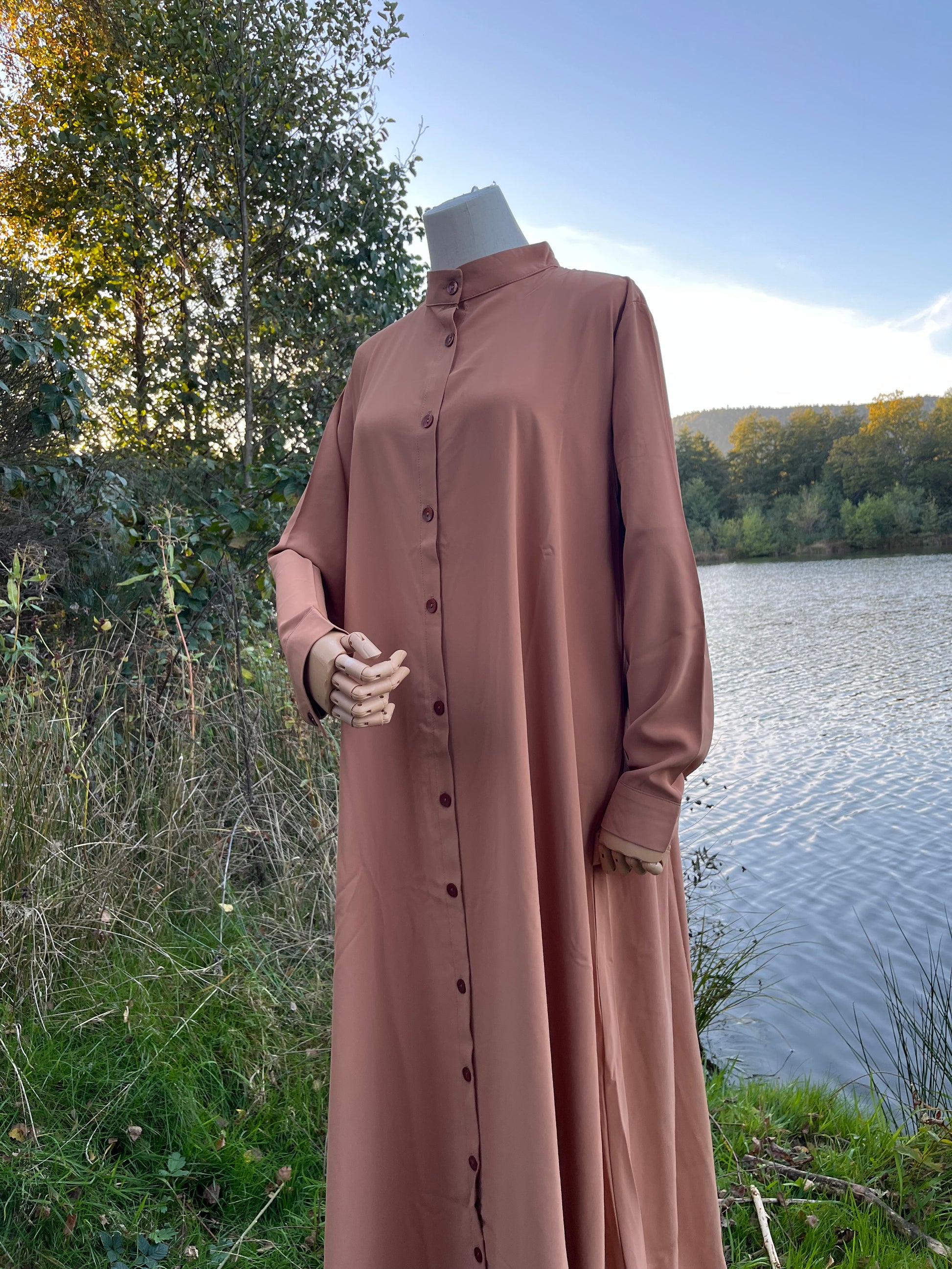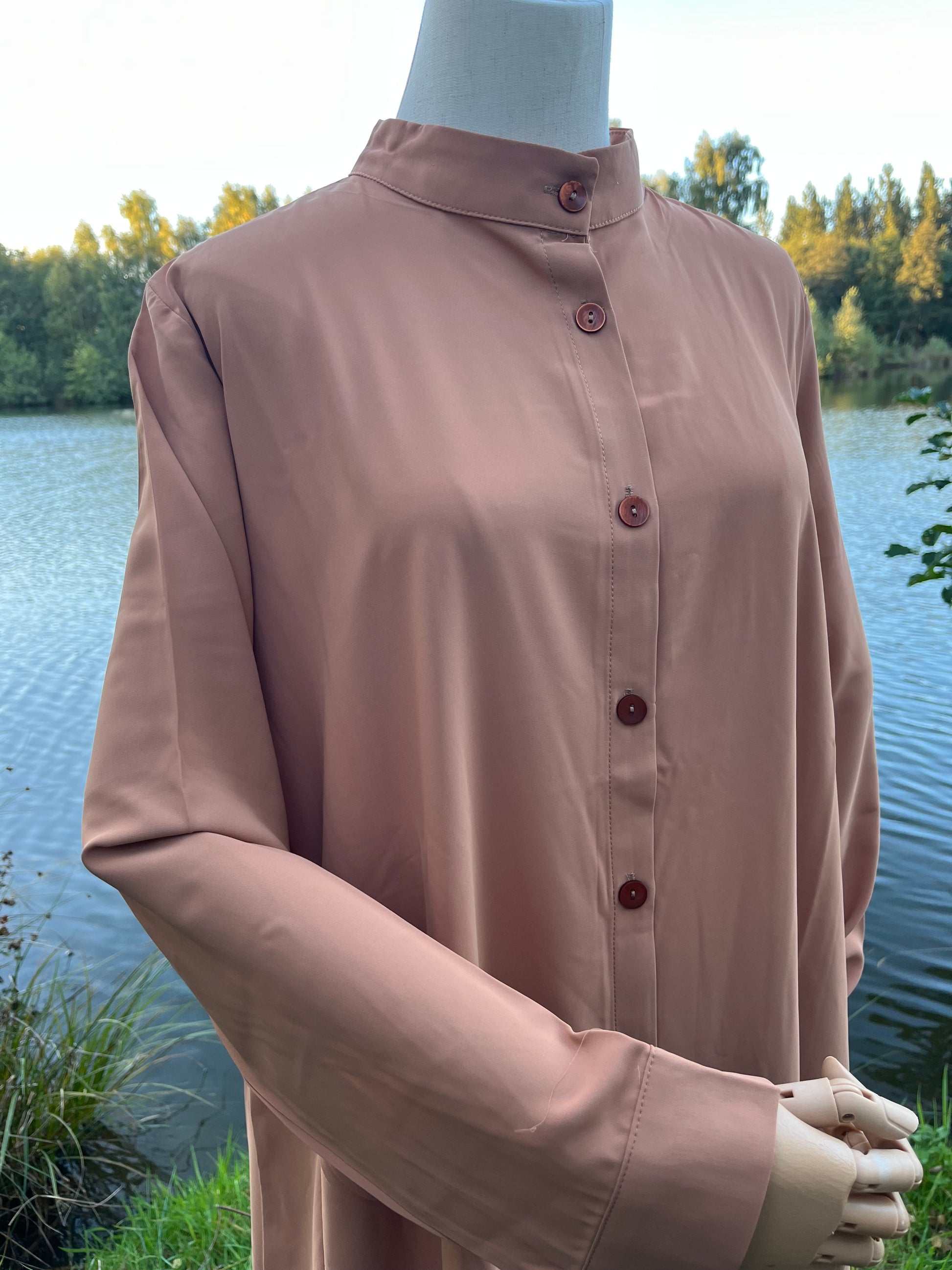 Abaya chemise idéale pour un style pudique tout en restant confortable. Sa coupe inspirée de la chemise classique apporte élégance et fluidité, parfaite pour toutes les occasions, du quotidien aux événements spéciaux. Bien large pour porter facilement tout en pudeur.